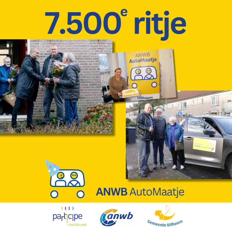 ANWB AutoMaatje is al actief in vele gemeenten en is op 17 januari 2019 gestart in Uithoorn en voerde op 9 november 2023 haar 7500e ritje uit!